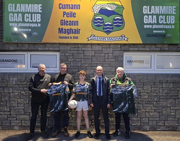 Finn is pictured proudly wearing his winning creation, alongside (L to R) Paul Kingston (Chairperson), Mark Davis (U15 Manager), SΓ©amus Collins from Irwins Pharmacy, and Drew Long (Junior Manager).