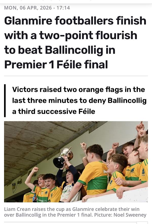 Thanks to Evening Echo for this fantastic piece about our Fรฉile Final ๐๐