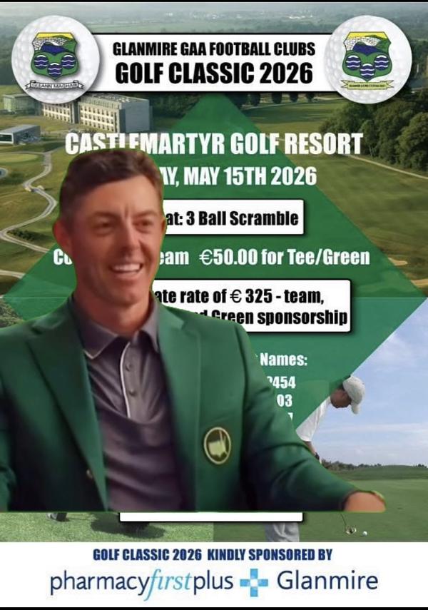 Rory McIlroy has reportedly just gotten off the phone to his mumโฆ in tears. Not after a major win. Not after a hole-in-one. But after hearing that Glanmire Football Club are hosting their Golf Classic in Castlemartyr ๐โณ๏ธ